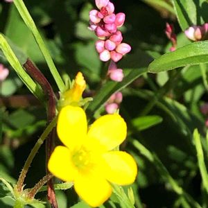 西尾生き物ふれあいの里で見つけたこの花🌸🌼 ピンク色の花はアカマンマ🌸 色鮮やかな黄色の花カタバミ🌼