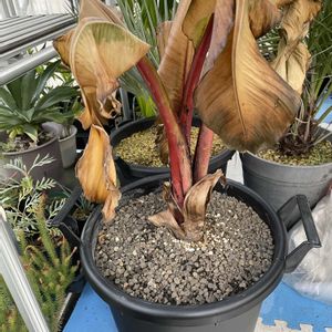 一時は3mほど背丈が伸び、美しい大型の葉を展開してたエンセテマウレリー😐 新葉は展開するのですがすぐに枯れてしまい、おかしいと思い鉢から抜いてみたところ.... おもっくそ根腐れ🫢‼️ しかし表皮を剥いき続けたら、何やら根らしきものが😀🎶 植え付けたのは4年程前で、土も庭を掘り返した土に安物赤玉土を混ぜただけで、しかも赤玉が崩れて粘土質になってたので、根詰まりしてたのかと😐... 最高のブレンドした土で、起死回生に期待🙏