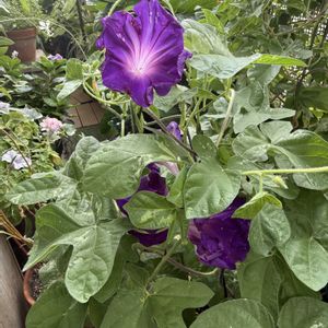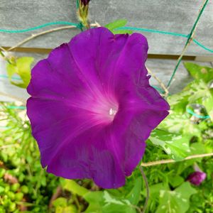 日本朝顔の藤娘 6月の初めに双葉の小さいポットを買ってから2か月半、ちゃんと開いて咲いている姿を初めて見られました。なかなか綺麗な紫🟣色です。 今朝の8時ぐらいまでは曇天でしたので気温もちょっと楽な感じでした😊私も、お花達も。