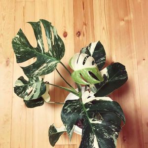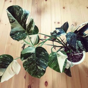 こちらの斑入りモンステラちゃん〜♡ 根っこ数ミリの状態で購入しました。 せっなくなのでこんな真冬でどんな感じで成長するのか経過観察してみることにしました。