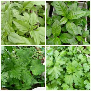 葉っぱ、葉っぱ~🌿 左上から時計回りに ※きく芋の葉っぱ ※藍の葉っぱ ※イタリアンパセリ ※三つ葉