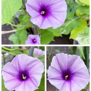 こんにちは 今日も暑いです またちびちびっ子とお留守番のため 娘宅に来ています🏠 寝てくれたので 今のうち(*˘︶˘*).。.:*♡ ①今日の朝顔 江戸風情2輪💜 右側は赤花夕顔 昨日初開花💜 咲き始めは16時半頃 見逃さないように玄関近くにおいておいて咲き始めをみて 出かけたのですが予期せぬ雨が降り 帰ってきたら花びらやぶれてました 😫残念💦 ②アジサイ万華鏡 挿し木からの開花😊 娘宅にあげました💙 ③クロホウズキ こぼれ種からで大株になってますが なんか花が咲くタイミングが悪くて なかなか綺麗に咲いたのがとれません💦 もう随分さいて実になってきているのに😓 ④ペチュニア ハッピーシャワー💖 ペチュニア 紫💜 こまめな水分補給を忘れずに🍀 良い週末をお過ごしくださいね♥️
