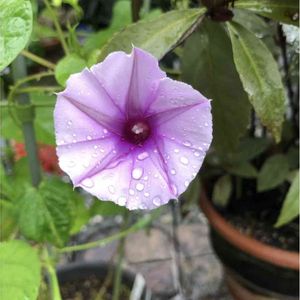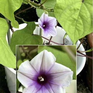 鉢植えの、赤花夕顔が咲いてました💕 思ったより、花が小さかった😅 ピンクが咲くと思っていたから、 「紫🟣やん!」と独り言