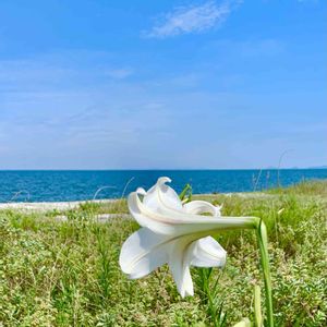 🌼389🌼ユリ 仕事帰りに近くの浜辺で✨🌱✨ 夏の終わり…🎐 海の景色も少し秋っぽく感じました😊 タカサゴユリでしょうか… テッポウユリでしょうか… シンテッポウユリでしょうか… タカサゴユリの花言葉は『正直』『無垢』『威厳』『甘美』『純潔』 テッポウユリの花言葉は『純潔』『偽れない』『威厳』『無垢』『甘美』 *Fun walk*
