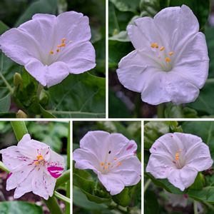 暑い日でしたね!Σ(×_×;)!😭💦💦 白い白粉花 咲きました🤗😍🍀🤍🤍🫶 1本の株からです🤍 オシロイバナの 不思議も🤗🫶 感じております~♫ 先日の備蓄米 甘味が少し私には 足りなく感じました... 味醂を少し入れると 良いようです。 どうなのかしら? 松葉ぼたんAは1輪咲いただけなんです… AもB 肥料は同じ 環境もほぼ同じですネ😭💦💦 この後も健やかなお時間をお過ごしくださいませ🤗🫶🤍🤍🍀💐 追記 白粉花は花弁(花冠)に見えるはのは萼(ガク) 花弁は退化したようです… 予想気温() 月齢7.7(🕛) 出12:16 入り23:36 19時 お月さま🌓が見える場所雲❗ 月齢8.0のはずですのに…………