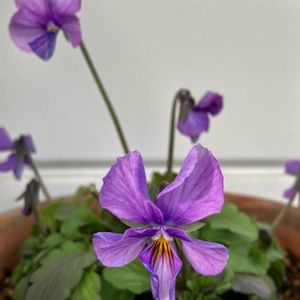 今の気温は2度❄︎❄️ 寒いです😨 玄関のビオラ ノーブランドですが野のスミレみたいで お気に入り💜です 早く庭に出してあげたいなぁ…