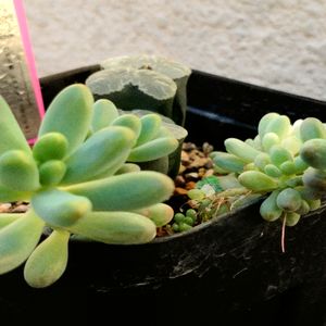 室内温室なので、紅葉はしていません。乙女心は葉先が紅葉し、恋心は全体的に紅葉するそう。他にもあるみたいですが、この2種を覚えておいたら良いかな、、。あとは、ラベルと特徴の一致か。。 (左側)乙女心[斑抜け]と、(右側)乙女心錦と、(奥側)ハオルチア(正式名称:ハオルシア)の玉扇・ブルーコンゲスタ。 #セダム #乙女心錦 #多肉植物
