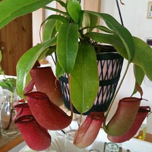 我が家に来てから約1ヵ月 (。•ᴗ•。)♡ コバエが居なくなりました(。•̀ᴗ-)و ̑̑✧ 袋も枯れずにワサワサ(*´˘`*)♥ この子を狩ったお花屋さんに新しい子入荷してるかな~と行ってみたら同じ値段のままのネペンテスが…袋は小さく萎んで葉もカラカラでした╭(°A°`)╮