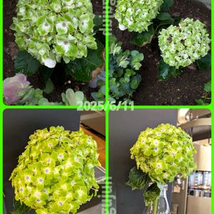 2025年6月11日撮影 横浜市内 バス停留所で🚍️バス待ち。 郵便局そばの花壇。 初めて見ました緑色系の紫陽花 🟩🟩