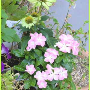 2025年7月24日撮影 横浜市内 ベランダで咲いているよ😊 ニチニチソウとペチュニアアマゾナス 🟩🟩