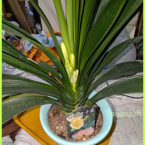 2025年7月27日横浜市内 自宅にて 今年2度目の蕾、クンシラン(黄色) 咲きそうです‼️ 🟩🟩