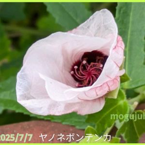 2025年7月7日撮影 横浜市内 散歩で出会えたお花達。 三角花壇のヤノネボンテンカ 花弁が開き始めましたよ😊 🟩🟩