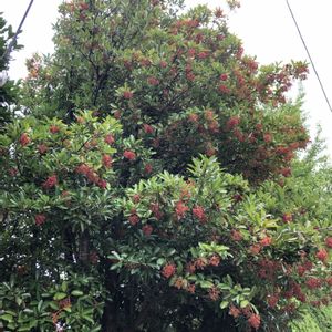 サンゴシュ🪸珊瑚樹🪸 小学校の校庭に剪定されていない✂︎自然のままの木がありました🌳 1️⃣2️⃣3️⃣ 小学校の校庭🏫フェンス沿い🌳 4️⃣5️⃣ 蕾からずっと見ている街中の垣根😊 何時も同じ形に剪定されていて✂︎ 目の高さでお花や実を見れる👀 放っておけば大木になる木を🌳垣根の形に剪定する植木屋さんの技も凄いわぁ👏 真っ赤になって熟れています🔴🔴⚫️😊💕