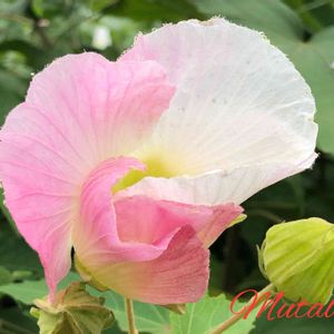 アオイ科フヨウ属のスイフヨウ(酔芙蓉)です ムクゲやフヨウの仲間なので一日花なのですが 花の色がお酒に酔うように朝は白、 昼過ぎからピンク、夕方には赤くなります この花は10時ごろ撮影したのでまだシラフですね 花言葉:「しとやかな恋人」「心変わり」