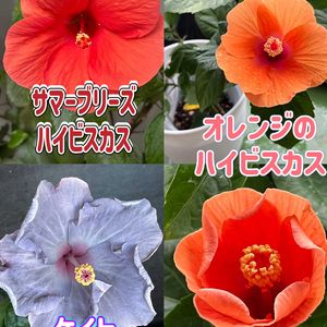 今ベランダで次々に咲いています。 ハイビスカス🌺 ❤️🧡💜🤍🩷 見切り品でお迎えしたハイビスカスがイキを吹き返し咲き出して とっても嬉しい☺️☺️ 😊🤗💕💖