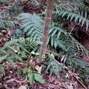 しまなみのミステリー😱 毎月4日はシダの日💕 しまなみのシダ オオカグマ 真ん中に木が生えていて見にくくて御免なさいm(._.)m オオカグマは南方の暖かいところが好きなシダで四国でも北に生えるのは珍しいです😵 (木の奥に見えるシダ) でももっと不思議なのは同じところに寒い❄️ところに生えるカシワバハグマ(木の手前の草)があることです✨ 極端に言うと亜熱帯の植物とブナ帯の植物が同居している不思議⁉️ ここの標高は20m海の近くです☺️ まだまだ、地元を調べなければと思います🐰