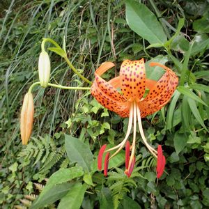 しまなみの花 コオニユリ 海岸の近くの草むらや松林などでよく見られます😆 昔は群生するくらい咲いていたそうですが最近はほとんど見ることができなくなりました😅赤い情熱的なユリ大好きです🍀😌🍀