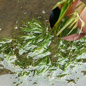 幻の水草シリーズ イトクズモ 名前がかわいそうな、面白そうな植物で必死で10年間探しようやく見つけました😱四国では100年くらい前に香川県で発見されて以来見つかっていなかった超レアな水草です😅胞子で殖える藻ではなく、上の丸の中のように花や種がつく種子植物です😆 薔薇や蘭と同じ種子植物とは思えません🐱