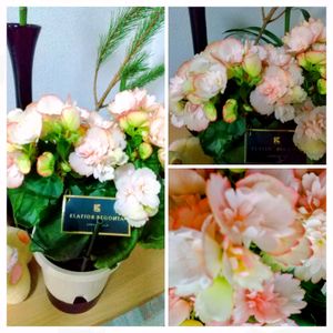 お店で見た瞬間即決! 衝動買いしてしまいました。 薔薇のような花びら 春らしい優しい色合い 素敵なお花に出会えました。 エラチオールベコニア 5号 底面給水鉢