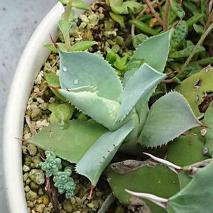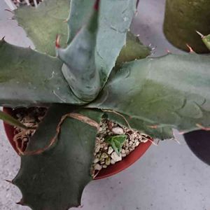 おはようございます~涼しい朝です。曇りですが アガベ パラサナ 子供でてきた!✨