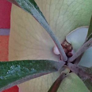おはようございます~雨降ったようです。バルコニーが、むちゃくちゃ濡れてます!ユーフォルビア 大正キリン 初めて咲かせました!✨