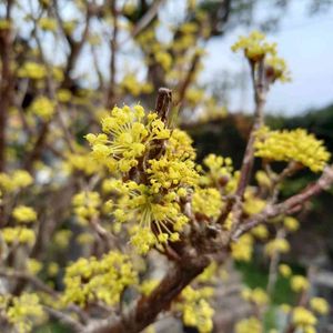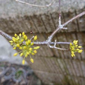 おはようございます😊🌼 散歩で見つけた サンシュユが満開です