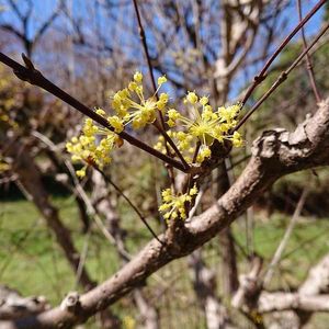 不思議な咲き方をしていたので📷パシャ "サンシュユ(山茱萸)"というらしい。 しかも、🌿薬用植物🌿!😳 季語は"春" というわけで、ここで1首。 "冬越えて 今だに見えぬ コロナ下 サンシュユ見ては 光を見る" こんなん作ってみました。 どうでしょうか😅 そういえば、この一角の所々に、笹の葉を見るのですが、この植物も元はアジアの物。この一角をアジア風にしたかったのかな🤔 この公園、コロナ前にリニューアルする話が出てたけど、どうなったのだろうか。。 学名:Cornus officinalis Sieb. et Zucc. ミズキ目ミズキ科の落葉小高木。 中国原産 別名でハルコガネバナ、アキサンゴ、ヤマグミ (Asiatische Kornelkirsche) 江戸時代に朝鮮経由で漢種の種子が日本に持ち込まれ、薬用植物として栽培されるようになったようです。 効能:滋養強壮、収斂(しゅうれん)、止血、鎮痙(ちんれん)、鎮静、抗アレルギー、利尿など