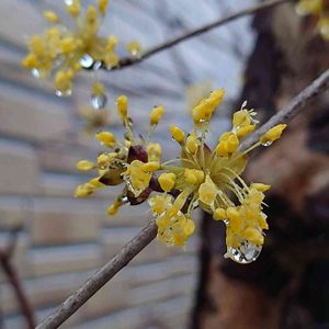 今晩は🌃 義父が家の前に育てていたサンシュユ💛🌧🌧綺麗でした☺️