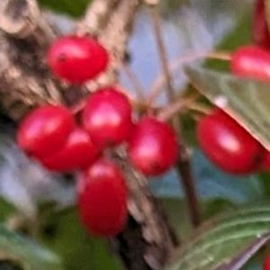 今日のお花サンシュユ お花ではありませんが綺麗でピカピカの赤い実です‼️