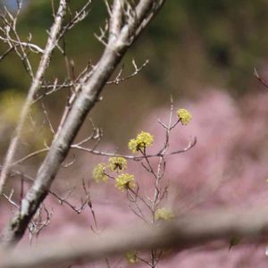 それぞれの力強い春です.•*¨*•.¸¸♬ とくにお目にかかれてうれしかったの は~ サンシュユを目近で眺めることができ たことです。 黄色い花木の春に憧れてました🟨 ピチパチピチパチと、 花火のようでした🎇🎇😍 山茱萸とサクラ越しに見たあべのハル カス…素敵でした