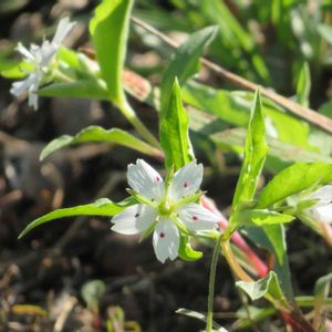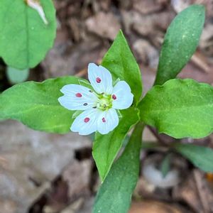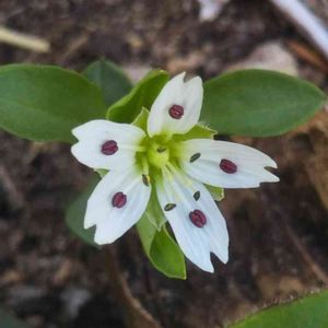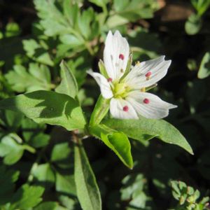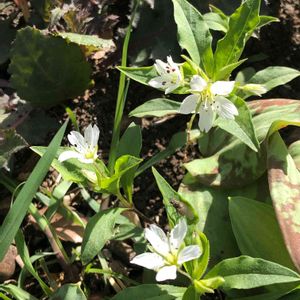 ワダソウ(和田草) 別名:ヨツバハコベ ナデシコ科 山地に生える多年草 高さ8〜20cm 花弁は5個、倒卵形で先は凹むのが特徴 雄蕊10個葯は赤紫色 昨年師匠が投稿されて、見たくて出かけてみました😊 丁度良い時期に見られたのかな💕 花の径は約1㎝ 小さくて赤い蕊が可愛いです💕