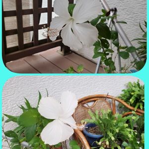 こんにちは✨😃❗ 昼過ぎから☁️です 🌧️になる予報です ベランダに放置のハイビスカス🌺 常夏の香り🤍が咲いていました~🤍🤍🤍 何のお世話もしないので、今年は咲かないだろうとおもっていましたが、嬉しいです🎵😍🎵🤍🤍🤍 娘の家では💛のハイビスカス🌺が可愛く咲いています✨ 元気そうです✊‼️ もう暫くは楽しませて貰えそうです🎵