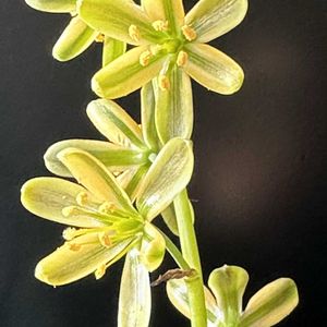 ラケナリア・トリコフィラの長毛タイプが咲き始めました🙌🏻 またなんとも言えない色をしているね君は! 日本の花は「花弁に緑」を取り入れてるのが少なめな印象があって、緑の花を見ると勝手に異国情緒を感じます。 さて花粉出てるので授粉授粉……受粉可能な花は見かけより少なくて4,5個といった感じでした。ちゃんと明日以降も少しずつ上のが咲いていくタイプですね。毎日しっかりやらねば! こういうタイプの花序は、先端の縮小しながらうやむやになっていく辺りがなんか「完成度ぉー!!(ツッコミ)」って感じで好きです😂