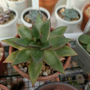 pic1⃣ Sempervivum 'Galaxy Star' センペルビウム ギャラクシー•スター 緑色が増えて、夏顔に変わってます💚 今のところ不調も無く頑張ってくれてます💪 🏷日曜日はセンペル 🏷斑入り見つけ隊♪ 参加させていただきます(⋆ᴗ͈ˬᴗ͈)” pic2️⃣ Echeveria agavoides エケベリア アガボイデス 数年前に買った多肉弁当に入ってた子 エボニーだと思ってたけど、エボニーの夏顔って、こんな感じですか?! pic3️⃣ 5月の顔 pic4️⃣ 4月の顔 Google先生が「魅惑の宵」ではないかと言うんです…🤔 季節で雰囲気が変わりますが、 ずっと綺麗な姿の子なので、助かります🤭💕