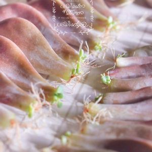 葉挿しがいつも土に挿しても全然変化無かったり途中で成長が止まったりと上手くいきませんでした この秋は違った方法を試してみたら元気に発根、発芽上手く行きました☺️ 撮った後全部植え付けましたが🌱これが成長したらこれまた丼の出来上がりかなぁなんて😆(妄想) 2枚目はアガボイデスサーモン 全然紅葉の気配は無いけど鋭い爪が成長してきました😄