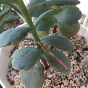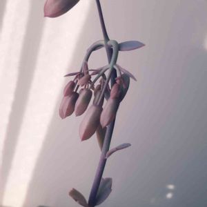先週から急に下向いてしまった(´°ω°`) これは…花が咲く体勢なの? 先っちょの葉の内側に、 半透明なクリーム色の電球みたいなのが付いてるような…