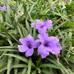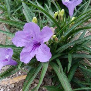 路肩に咲いてたとても可愛い〜🌸お花。 ご存知の方いらっしゃっいました〜植物名感謝感謝デス💚ありがとうございました😊👍 『ルエリア・サザンスター』ヤナギバルイラソウ(Ruellia simplex)から作出された園芸品種。 ヤナギバルイラソウの方は葉っぱ少なめ縦に伸びる。ルエリアサザンスターの葉っぱモリモリと横広がりなのでそれに近いのが決めてになりました。