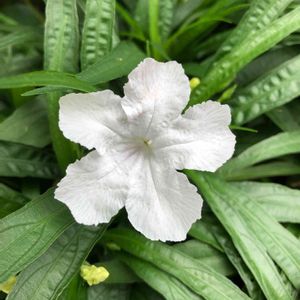 ルエリア(ヤナギバルイラソウ)鉢植えでしょうか。地植えしか見たことがないので。白い花のをつけています。育てている人に聞いたら1日花だそうです。