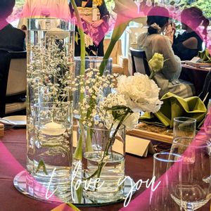 今日は甥っ子の結婚式💕でした お天気も回復してとっても良いお式と披露宴 お幸せにネ🥰 さて披露宴のテーブルの上の装花 お水の中にカスミソウがすっぽり キャンドルも浮かべて ステキ‼️ このアイデアいただきます🎶🎶🎶