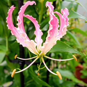 今日も金沢、36℃🌡️近くまで上がる予想🥲 1️⃣度々…😅ですが、昨年咲かなかった グロリオサの「ピンク」🩷が 綺麗に開花ヽ(^。^)ノ 今年は遠くは九州から届いた球根(購入品より大っきい😲❣️)を 2️⃣頂いた球根花❤️🌿。もうぐんぐんと伸び、私の身長を超えました⤴️😂👍 📛「ファイヤーバード」 3️⃣昨年、💛「ルテナ」黄色花だけは咲いてくれまし(❤️🩷💛3色の🌱芽出しだったのですが🙄?) 4️⃣昨年7月にご近所で見掛けたグロリオサ😲❣️ 北陸でも咲けるのね💡と、慌ててポチッ👆️しました。我が家の開花は💛オンリーでしたが…。 5️⃣嬉しいのでピンクの…らしい 花姿をもう一度📱✨️💕 水不足のニュースを目にしました。こちら金沢でも雨量☔は例年よりかなり少なそうですが、今のところは節水制限も無く大丈夫そう。ただ、朝夕の水やりが億劫になってきました😭💦 … …と、そろそろ梅雨明け(?)かしら。例年にない 大変な年の夏(?)です。 グロリオサ見たさに、やはり 🏡👣💨💨ダッシュ、外には出てみますが(*˘︶˘*).。*♡ 元気もらえますね〜♡♡♡