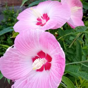 おはようございます☀💦 朝7時過ぎには30℃🌡️近くまでに。日中は35℃🌡️予想とか😱 タイタンビカス💮💮💮🌿今季の初開花🎊 一気に3輪が開花、写真はタイタンビカスづくし🥰 昨年、時期としては少し遅く迎えた「タイタンビカス」。きゅうり🥒棚の南側隅っこで、遠慮がちに花を咲かせていましたが😅今年は春の畑土(畝)作りの時に 日の当たる場所に植え替え❣️ 昨夕の水やりで蕾先に色は見えてたのですが、咲き始め(2picめ)も目にする事ができ🤩作業🌱🚿後には全開〜♡♡♡