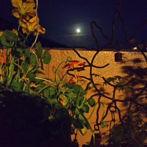 20時20分 今日は満月🌕 ナスタチウムとお月さま この月は白く撮れてますが 今日の月はオレンジ色でした! みなさんも見てみて❕