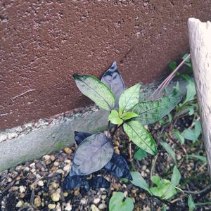 雑草っぽくないこの黒っぽい葉は何だろう? 前に育ててたカラフルな唐辛子の葉に似てるような(*ノ>ᴗ<)🌱