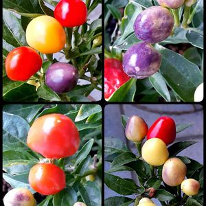 観賞用のトウガラシ🌶🌶🌶 最初は紫色しかなかったのに 色とりどりになりました🌈 なかなか綺麗で変化が楽しい💝 さりげなく庭のアクセントになっています スクスク育つとホント嬉しい✨✨✨ ありがとうねぇ〜❤️