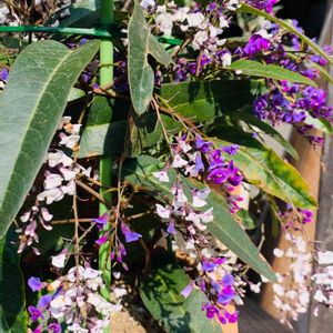🟪🤍ハーデンベルギア🤍🟣 テラス席が一席あり レオとも行けるピザ🍕屋さんにあったハーデンベルギア ちょっと水切?レオのマーキングにかける水ボトル🧴の水を かけておきました✨🤗