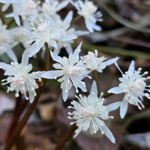セリバオウレン🤍🤍🎵 こんなに華やかだったのですネ 淡いピンクのところ、 愛らしすぎです💕 こちらは、雄花だそうです (雌雄異株だが両性花あり) また、バイカオウレンとセリバオウレンは、 スプリングエフェメラルだとおもっていましたが、 ちがってました😭 (スプリングエフェメラル定義により)