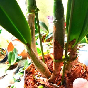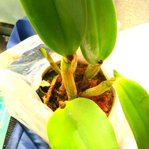 胡蝶蘭組より、 今年の1月位にうちに来たミディさん。(お勤め品で) 寒いから下手にいじれずそのまま管理して春に見たら、根っこが大半ダメになってた。 しばらく鉢に入れずビニール袋に入れて管理してから、素焼き鉢に植えて外管理してるけど、根っこがほぼ無いから、葉水重点で。 根っこがちょっと見えてきて嬉しいなぁ~。 うちに来た胡蝶蘭は今、10株あって、中には既に葉っぱで来て花をみて無い子もいるので全員、花を拝みたい‼️