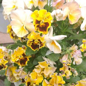 テントウムシさんとパチリ📸🐞 玄関ポーチの花は全て無農薬で育てているので当然色んな虫が寄ってきます。 特にこの鉢植えは暖色系のパンジービオラなのでアブラムシが大量発生。近所の河原からテントウムシさんを連れてきました。 それ以来アブラムシの数は激減しました😳 花の手入れをしている間は2歳の娘も一緒で色んな虫や葉っぱ、花を観察しているのですが、娘がアブラムシのことも「かわいい!✨」と言うので「え〜アブラムシさんは可愛くないよ」と言うと「かわいい!😡」と念押しされたので「そうやな、こんなちっちゃくても一生懸命生きとるでかわいいな」と言っときました(笑)