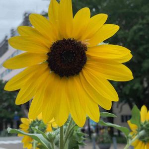 素敵なひまわり見つけました。 葉っぱの傘をさしたよう