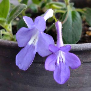 ストレプトカーパス サキソルム💜 ブルーウイング(クレロデンドルム)💙 冬越し、挿し芽からの子が 大きくなりました•*¨*•.¸¸♬︎ これから次々と咲いてくれるでしょう